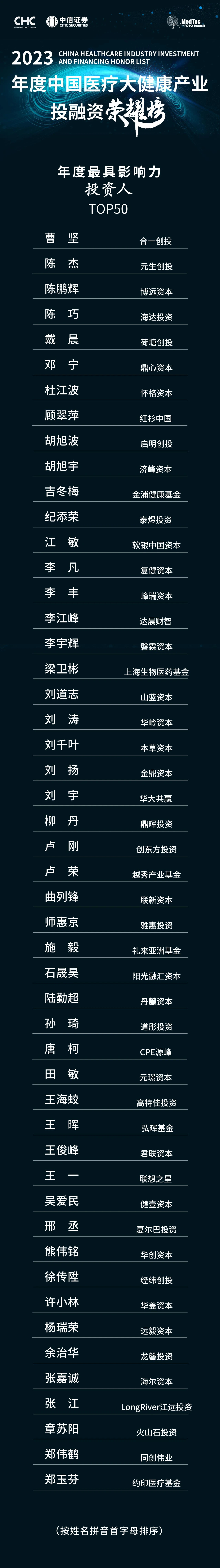 - 2023年度最具影響力投資人TOP50(CHC?中信證券評選)